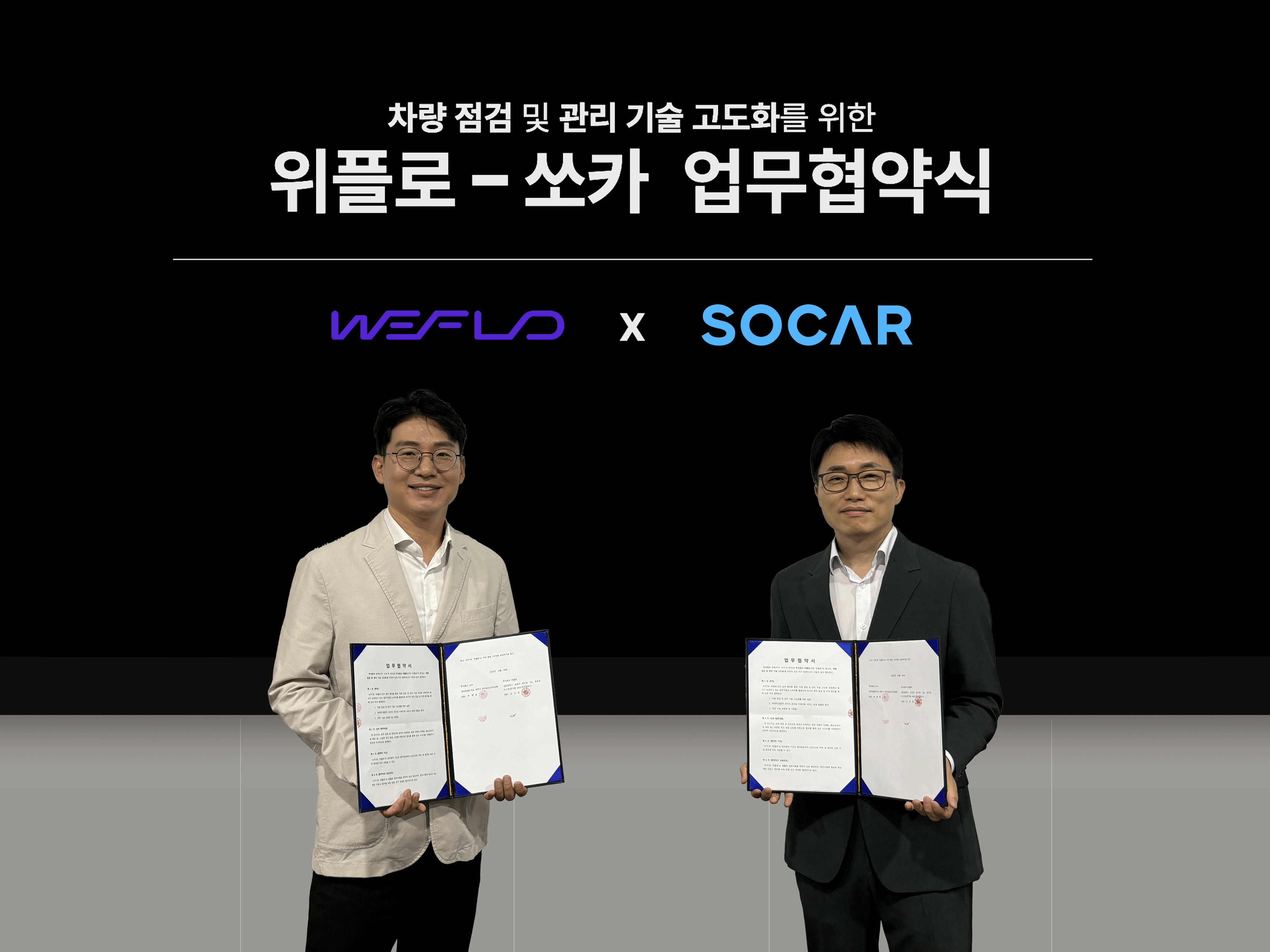 미래 모빌리티 AI 전문기업 위플로가 카셰어링 플랫폼 쏘카(SOCAR)와 차량 점검 및 관리 기술 고도화를 위한 업무협약(MOU)을 체결했다고 11일 밝혔다. 이번 협약을 통해 양사는 차량 점검 및 관리 기술의 실증을 진행하고, 카셰어링 서비스의 운영 효율성을 증대시키기 위한 협력을 이어갈 계획이다.