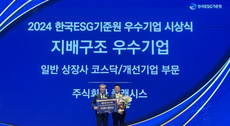 글로벌 메디컬 에스테틱 전문기업 ㈜클래시스(대표이사 백승한)가 전일 열린 2024년 한국ESG기준원(KCGS) 우수기업 시상식에서 지배구조 부문 우수기업으로 선정됐다고 6일 밝혔다.