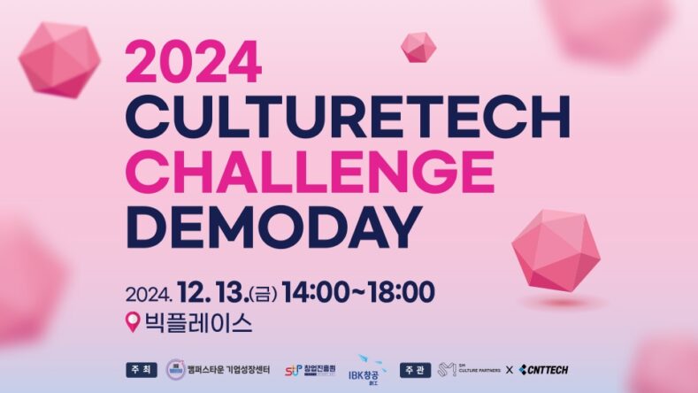 투자 전문 액셀러레이터 씨엔티테크(대표 전화성)SM컬처파트너스(대표 박성호)가 차세대 컬처테크 스타트업과 함께하는 오픈이노베이션 프로그램 ‘컬처테크 챌린지(CultureTech Challenge) 2기 데모데이’를 오는 13일 역삼 빅플레이스에서 개최한다.