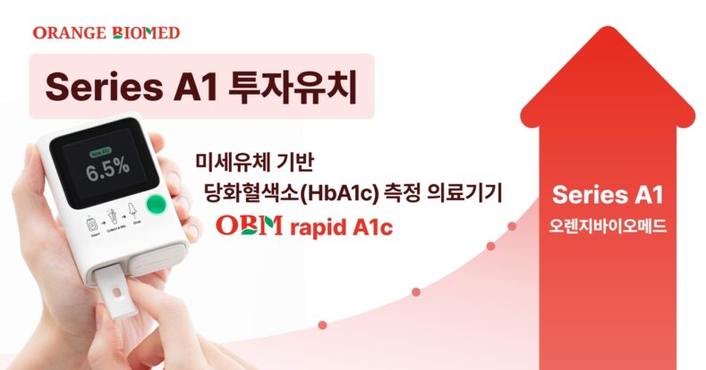 오렌지바이오메드는 미세유체 기술을 활용한 휴대용 당화혈색소(HbA1c) 측정 의료기기 ‘OBM rapid A1c’를 발명한 바이오∙헬스케어 스타트업이다. 당화혈색소는 당뇨병 진단 및 관리에 필수적인 지표로 2~3개월의 혈당 조절 상태를 반영하며 당뇨 합병증 발병 위험을 예측한다. 이번 시리즈A1 라운드에서 회사의 혁신적인 기술력과 임상연구 성과를 높이 평가받았다.