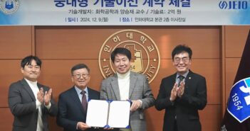 글로벌 탄소나노튜브(CNT) 선도 기업 ㈜제이오(대표이사 강득주)가 지난 9일 인하대학교(총장 조명우)와 고투과도와 고결정성을 가지는 탄소나노튜브(CNT) 멤브레인 기술 이전 협약을 체결했다. 이번에 이전하는 기술은 인하대 화학공학과 양승재 교수 연구팀이 개발한 CNT 멤브레인 기술로 기술 이전료는 2억원 규모다. 지난 20년간 탄소나노튜브 연구개발에 매진해 온 제이오는 10년 전부터 탄소나노튜브 시트를 개발하여 공급해 왔다. 회사는 이를 응용해 현재 산학협력 연구과제로써 반도체 분야 EUV 펠리클용 탄소나노튜브를 개발하고 있으며, 핵심기술 완성도를 높이기 위해 이번 기술이전 계약을 체결하게 됐다. 제이오는 이번 협약 체결을 통해 고투과도와 고결정성을 강화한 EUV 팰리클용 CNT 멤브레인 개발에 속도를 내면서 이차전지 산업 중심인 탄소나노튜브의 시장을 반도체 산업으로 확대하고, 차세대 반도체 혁신 소재기업으로 시장 내 지위를 더욱 공고히 할 것으로 기대하고 있다. 펠리클은 EUV 공정에서 회로를 새겨 넣는 판인 포토마스크를 이물질로부터 보호하는 역할을 한다. EUV 공정은 광투과를 통해 노광을 진행하게 되는데, 펠리클이 이 과정에서 발생되는 파티클(이물질)에 의한 마스크 손상 등의 공정 손실을 최소화해 제품의 수율을 높일 수 있어 개당 가격이 수천만원에서 비싸게는 1억원에 육박하는 고부가가치 제품으로 평가받는다. 특히 현재 상용화된 EUV 펠리클은 EUV 노광 장비 출력인 300~400W에 적합하지만, 향후 도입될 하이-NA EUV 장비는 출력이 높아 600W 이상의 내구성을 갖춘 새로운 펠리클이 필요한 상황이다. 탄소나노튜브 펠리클은 기존 실리콘 소재의 EUV 펠리클보다 내구성이 2배 강해 향후 도입될 하이-NA EUV 공정에 최적화되었다는 평가를 받는다. 제이오 강득주 대표는 “제이오는 이번 기술 이전 협약을 통해 유관기관들과의 협력을 공고히 하고, 차세대 반도체 연구에 기여함으로써 탄소나노튜브 분야 독보적인 선도기업으로 자리매김 할 것”이라며 “탄소나노튜브는 이차전지와 반도체 산업에 이어 향후 방산과 전장 및 건자재 산업 등에서도 혁신 소재로 자리매김하게 될 것이며, 이를 주도하는 제이오는 글로벌 모든 산업에 탄소나노튜브를 적용해 탄소나노튜브 월드를 세워 갈 것“라고 말했다. 인하대학교 양승재 교수 또한 “이번 기술이전이 대학 연구 성과의 산학협력 모범 사례이자 국가 산업 부흥의 초석이 되길 바란다”고 말했다. 한편 제이오는 지난 20년간 탄소나노튜브 개발을 통해 업계 최초 다중벽탄소나노튜브(MWCNT) 대량생산 성공에 이어, 2014년 세계 최초 비철계 탄소나노튜브 개발 및 소수벽탄소나노튜브(TWCNT) 개발 성공, 2023년 단일벽탄소나노튜브(SWCNT) 개발 성공 등 세계 최고 수준의 CNT 개발 기술력을 갖춘 기업이다. 관련 기사 더 보기 https://www.venturesquare.net/948102