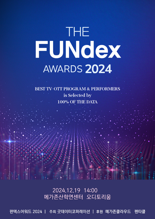 펀덱스 어워드는 K-콘텐츠 경쟁력 분석기관인 굿데이터코퍼레이션이 주최하는 시상식으로, 올해로 두 번째를 맞이한다. 이번 행사에는 클라우드 선도 기업 메가존클라우드와 펜타클이 공동 후원하며, 최고의 TV 프로그램 및 OTT 콘텐츠, 출연자를 선정하는 자리가 될 예정이다. 시상은 화제성, 재미 강도 지수, 검색 반응, 출연자 순위 등 지난 1년간 발표된 데이터를 종합 집계하여 총 20개 부문에서 이루어진다.