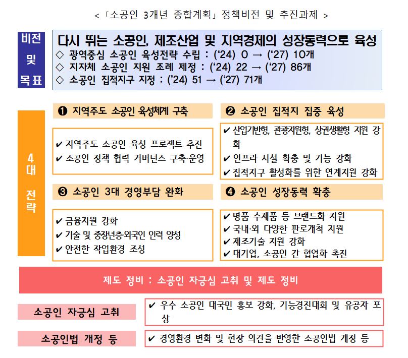 소공인들이 겪는 금융, 인력, 열악한 근로환경 3대 경영부담 해소를 위해 관계부처·지자체·민간기업이 협력하여 적극 지원할 계획이다.