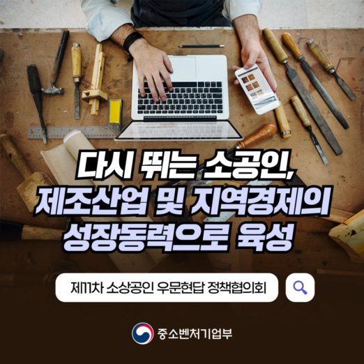 중소벤처기업부(장관 오영주, 이하 중기부)는 18일 경기도 고양 인쇄문화허브센터(소공인특화지원센터)에서 제11차 ‘소상공인 우문현답 정책협의회’를 개최하여 ‘소공인 3개년 종합계획’을 발표하고, 현장의 의견을 청취하는 등 정책 방향에 대해 깊이 있게 논의하였다.