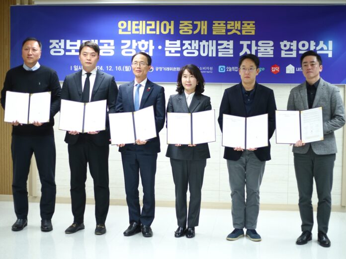 라이프스타일 슈퍼앱 오늘의집은 공정거래위원회와 ‘인테리어 중개 플랫폼 정보제공 강화 및 분쟁해결’을 위한 자율준수 협약(MOU)을 체결했다고 16일 밝혔다. 서울 중구 한국공정거래조정원에서 열린 협약식에는 조홍선 공정거래위원회 부위원장, 이진숙 한국소비자원 시장조사국장, 지영환 오늘의집 재무총괄 등이 참석했다.