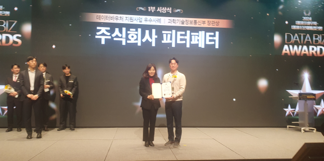 피터페터는 2년 연속 데이터 바우처 수요기업에 선정되었으며, 올해는 우수기업으로 선정되어 장관상을 수상했다.