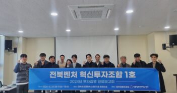 전북창조경제혁신센터(센터장 강영재, 이하 혁신센터)는 24일 오전 11시에 혁신센터 5층에서 전북벤처 혁신투자조합 1호의 투자집행 완료보고회를 개최했다고 밝혔다. 이번 행사에서는‘전북벤처혁신투자조합1호’의 마지막 투자기업인 ㈜쿨베어스(대표자 이민재)와 ㈜토모로우(대표자 조용우)에의 투자 계약을 체결하였고, 지금까지 조합에서 투자한 기업 소개 및 투자 현황 보고를 진행했다. 전북벤처혁신투자조합 1호는 ‘22년 말 (사)벤처기업협회 전북지회 이인호 협회장을 중심으로 도내 선배 벤처창업가 7인이 뜻을 모아 후배 창업가의 성장을 지원하고자 결성된 개인투자 조합이다. 이번에 투자한 ㈜쿨베어스는 2021년 전주에 설립된 기업으로, 친환경 섬유소재로 만든 하이브리드 스포츠웨어 브랜드‘AVEN’을 운영하고 있으며 중소벤처기업부의 TIPS, 해양수산부 R&D과제를 수행하는 등 기술력을 인정받았고, 현재 수원 스타필드 내 오프라인 매장도 오픈하는 등 기업 성장에 박차를 가하고 있다. ㈜토모로우는 2024년 혁신센터 보육공간에 입주하여 설립한 기업으로 외국인등록증 없는 외국인을 위한 모바일 본인인증 및 간편결제 솔루션‘TOMO’를 개발하였다. 2024년 핀테크 아디이어 공모전 우수상을 수상하고, 하나소셜벤처유니버시티 최우수 기업으로 선정되는 등 우수한 성과를 달성한 기업이다. 강영재 센터장은 “선배 벤처창업가들의 투자금으로 전북 지역에 있는 후배 창업가들에게 성장할 수 있는 기회를 마련하게 되었다. ”며 “앞으로도 지역 선배창업가의 출자를 통해 지속적으로 투자펀드를 만드는 선순환 체계를 조성하고, 투자기업에게는 팁스, 先투자 연계 보증 등 후속 성장을 위해 집중 지원할 계획이다”고 밝혔다. 혁신센터에서는 최근‘전북벤처 혁신투자조합 2호’결성승인을 받고 출자자를 모집하고 있다. 출자관련 자세한 문의는 혁신센터 투자연계사업팀(063-220-8903)에 문의할 수 있다. 관련 기사 더 보기 https://www.venturesquare.net/951727