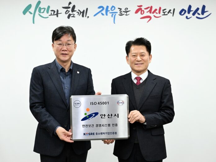 중소벤처기업인증원(원장 엄진엽, KOSRE)은 안산시(시장 이민근)가 경기도 지자체 최초로 국제표준화기구(ISO)로부터 안전보건경영시스템(ISO 45001) 인증을 획득했다고 밝혔다.