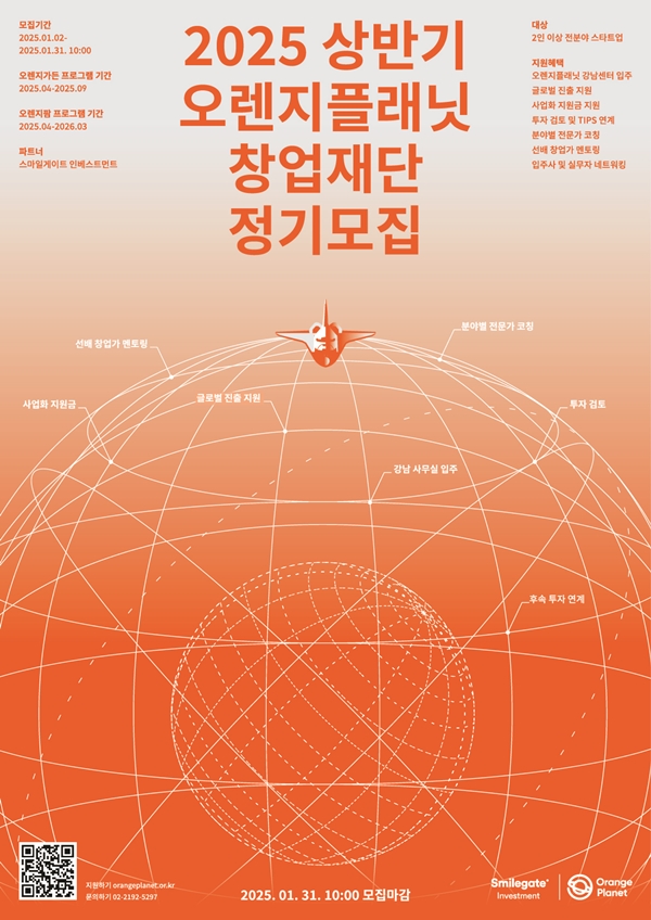 스마일게이트 오렌지플래닛 창업재단(이하 오렌지플래닛, 센터장 서상봉)이 2025 상반기 정기모집을 시작한다고 6일 밝혔다.