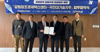 강원창조경제혁신센터(센터장 이해정, 이하 강원혁신센터)는 20일 강원혁신센터 포레스트홀에서 국민대학교기술지주회사(대표 이인형, 이하 국민대기술지주)와 ‘강원지역 벤처투자 활성화를 위한 업무협약’을 체결했다고 밝혔다. 두 기관은 협약을 기점으로 ▲강원지역 스타트업 발굴 및 투자 ▲투자조합 결성 ▲보육기업 간 교류 ▲기술사업화 네트워크 구축 등에 협력할 예정이다. 이날 업무협약 체결식에는 이해정 강원혁신센터장, 이인형 국민대학교 산학협력단장 겸 국민대기술지주 대표, 김재학 강원혁신센터 전략투자본부장, 이진구 국민대기술지주 부사장 등이 참석해 향후 강원지역 벤처투자 활성화 방안에 대해 논의했다. 강원혁신센터 이해정 센터장은 “국민대기술지주는 미래모빌리티, 바이오·헬스 분야에 특화된 액셀러레이터다”라며 “앞으로 강원지역 내 첨단산업 분야 스타트업 초기투자에 좋은 파트너가 될 것”이라고 말했다. 국민대기술지주 이인형 대표는 “지난해 국민대기술지주는 강원혁신센터 보육기업 주신에코솔루션㈜, ㈜사운드엣에 투자를 완료하였다”라며 “이번 업무협약을 계기로 강원지역 스타트업 대상 투자를 확대할 수 있도록 노력하겠다”고 말했다. 관련 기사 더 보기 https://www.venturesquare.net/954726