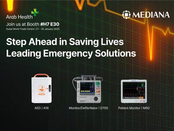 Mediana prévoit d'exposer un défibrillateur externe automatique (DEA) et un moniteur/défibrillateur haut de gamme (MDD) sous le thème « Principales solutions d'urgence » lors de cette exposition.