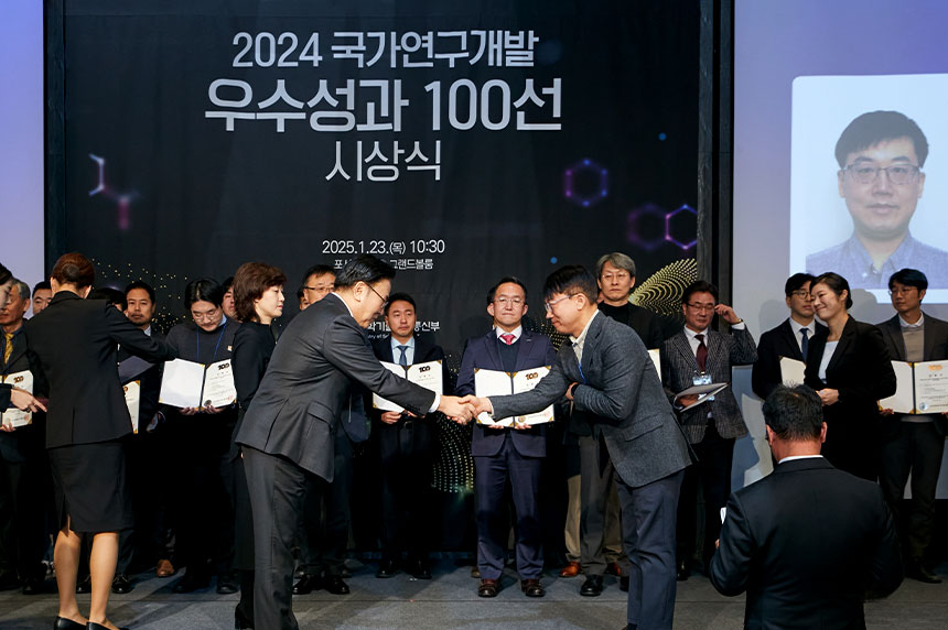 The 100 Best National R&D Achievements is a credible event held annually by the Ministry of Science and ICT, which selects excellent research achievements among government-supported R&D projects recommended by each ministry. In 2024, a total of 869 research achievements were subject to review, and 100 experts from industry, academia, and research conducted the review, and the final 100 were selected.