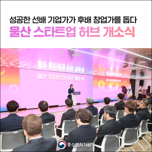 Minister Oh Young-joo said, “The Ulsan Startup Hub is even more meaningful in that it is a public-private cooperative innovative startup space created by successful senior entrepreneurs in the region to nurture junior entrepreneurs, along with government support,” emphasizing that “a virtuous cycle structure in which senior entrepreneurs’ experiences and assets are passed on to junior entrepreneurs can further solidify the regional startup ecosystem.”