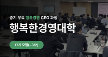 휴넷이 후원하는 사단법인 행복한성공(이사장 이의근)은 무료 최고경영자(CEO) 과정 ‘행복한 경영대학’ 17기를 모집한다고 밝혔다. 지원자격은 창립 3년 이상, 직원 수 30명 이상 기업의 CEO이며, 자격 조건에 충족하지 못하더라도 행복경영 실천 의지가 강한 스타트업 및 벤처기업 CEO라면 특별 지원할 수 있다. 모집 기한은 오는 3월 2일까지이며, 서류 심사를 거쳐 총 100여 명을 선발할 예정이다. 본 과정은 3월 17일 입학식을 시작으로 3개월간 매주 월요일에 진행되며, 교육비는 전액 무료다. 수업은 실시간 라이브를 통해 온·오프라인으로 참여할 수 있다. 17기 과정에는 ▲고운세상코스메틱 이주호 대표(프로텍터십) ▲인코칭 홍의숙 회장(행복에너지로 만드는 최고의 성과) ▲코글로닷컴 이금룡 회장(지속 성장을 위한 변화와 혁신) ▲한국협업진흥협회 윤은기 회장(초성과 초리스크시대: 신경영과 뉴리더십) ▲휴넷 조영탁 대표(행복경영 & 행복한 리더십) 등의 강연이 진행될 예정이다. ‘행복한 경영대학’은 휴넷이 ‘행복경영’의 확산을 위해 만든 CEO 대상의 무료 최고경영자 과정이다. 2016년에 시작해 현재까지 900여 개 기업의 CEO가 본 과정을 수료하고, 소속 기업에 행복경영 제도를 도입하고 있다. 동문기업들의 성공 스토리를 담은 도서 ‘스몰 석세스’(2022년), ‘잘되는 강소기업의 비밀’(2023년), ‘슈퍼 강소기업’(2024년)이 출간됐다. 한편 중소기업의 자문을 맡아줄 전문가도 함께 모집한다. 세무∙회계, 인사∙노무, 마케팅∙홍보, 법률 등의 전문가라면 지원 가능하다. 보다 자세한 내용은 (사)행복한성공 홈페이지에서 찾아볼 수 있다. 관련 기사 더 보기 https://www.venturesquare.net/941152