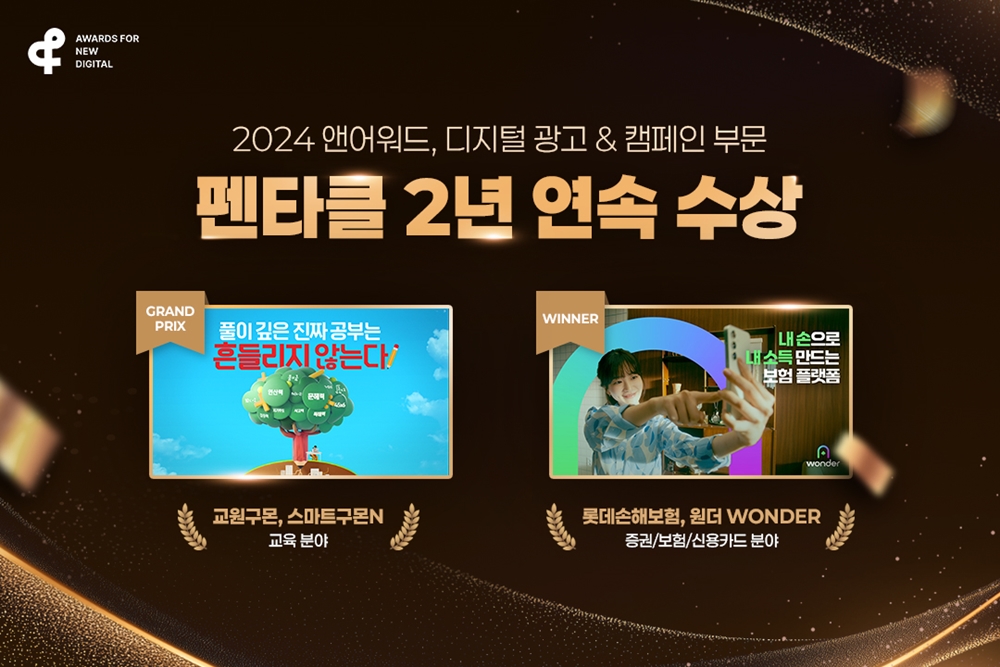 Pentacle won two awards in the Digital Advertising & Campaign category for its two campaigns. First, the 'Kyowon Kumon Smart Kumon N' campaign won the Grand Prix, and second, the 'Lotte Insurance Wonder' campaign won the Winner Award, making it a double crown winner.