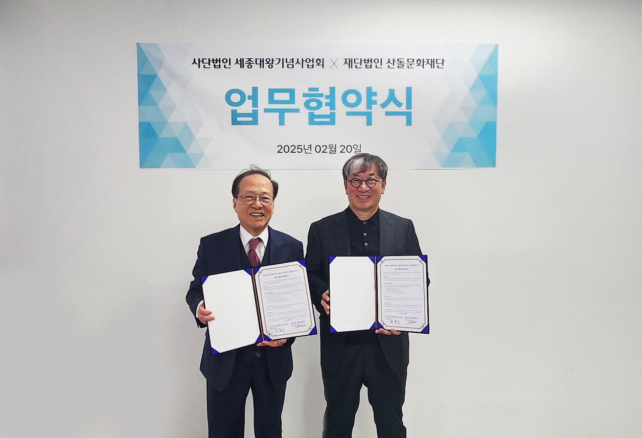 The Sandoll Cultural Foundation announced on the 21st that it signed a business agreement with the King Sejong Memorial Foundation on the 20th to jointly promote public interest projects for the development of Hangeul and Hangeul fonts.