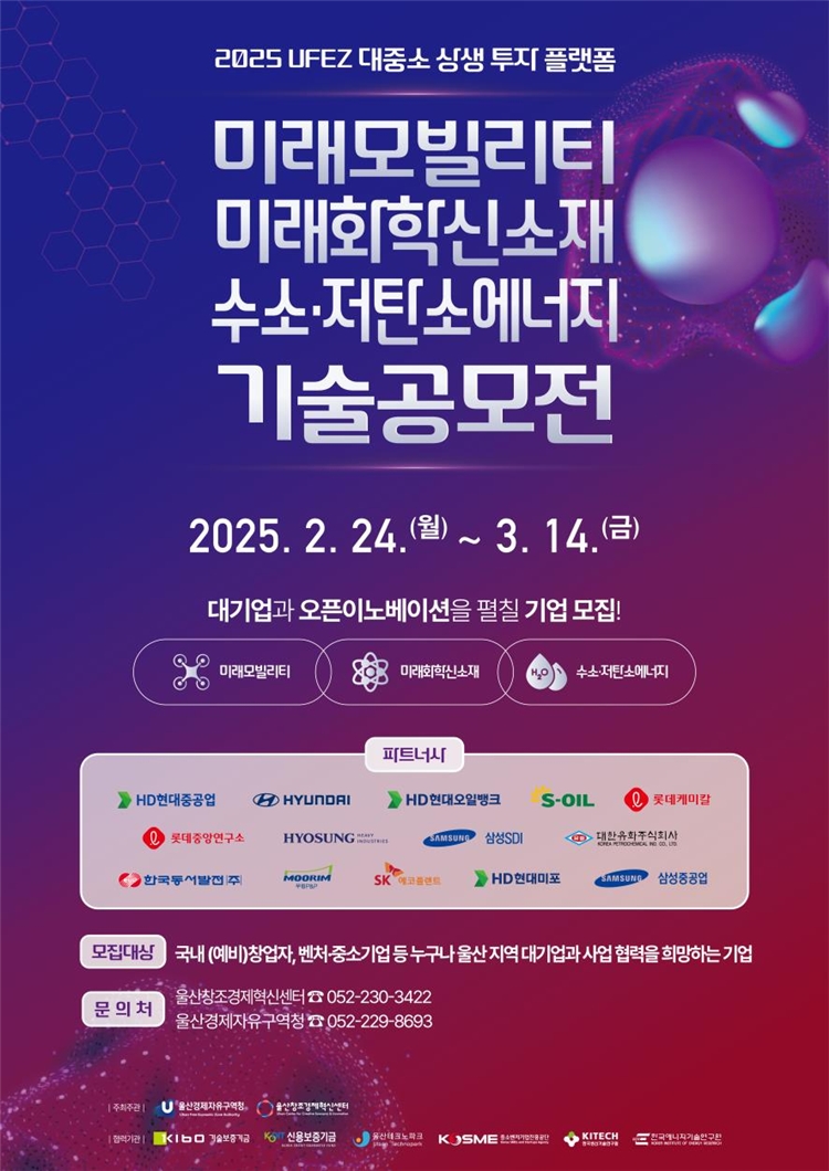 울산창조경제혁신센터(이하 울산창경)는 ‘2025 UFEZ 대중소 상생 투자 플랫폼’ 공모전을 개최한다고 밝혔다.