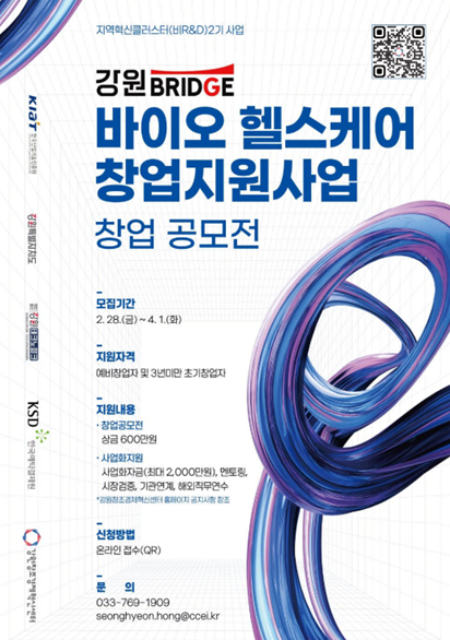 이번 사업은 예비 창업자와 업력 3년 이하의 초기 창업자를 대상으로 하며, 사업화지원금, 멘토링, 실증 프로그램, 해외연수 등 다양한 지원을 제공하여 강원 지역 바이오·헬스케어 분야의 혁신과 경쟁력 강화를 목표로 한다.