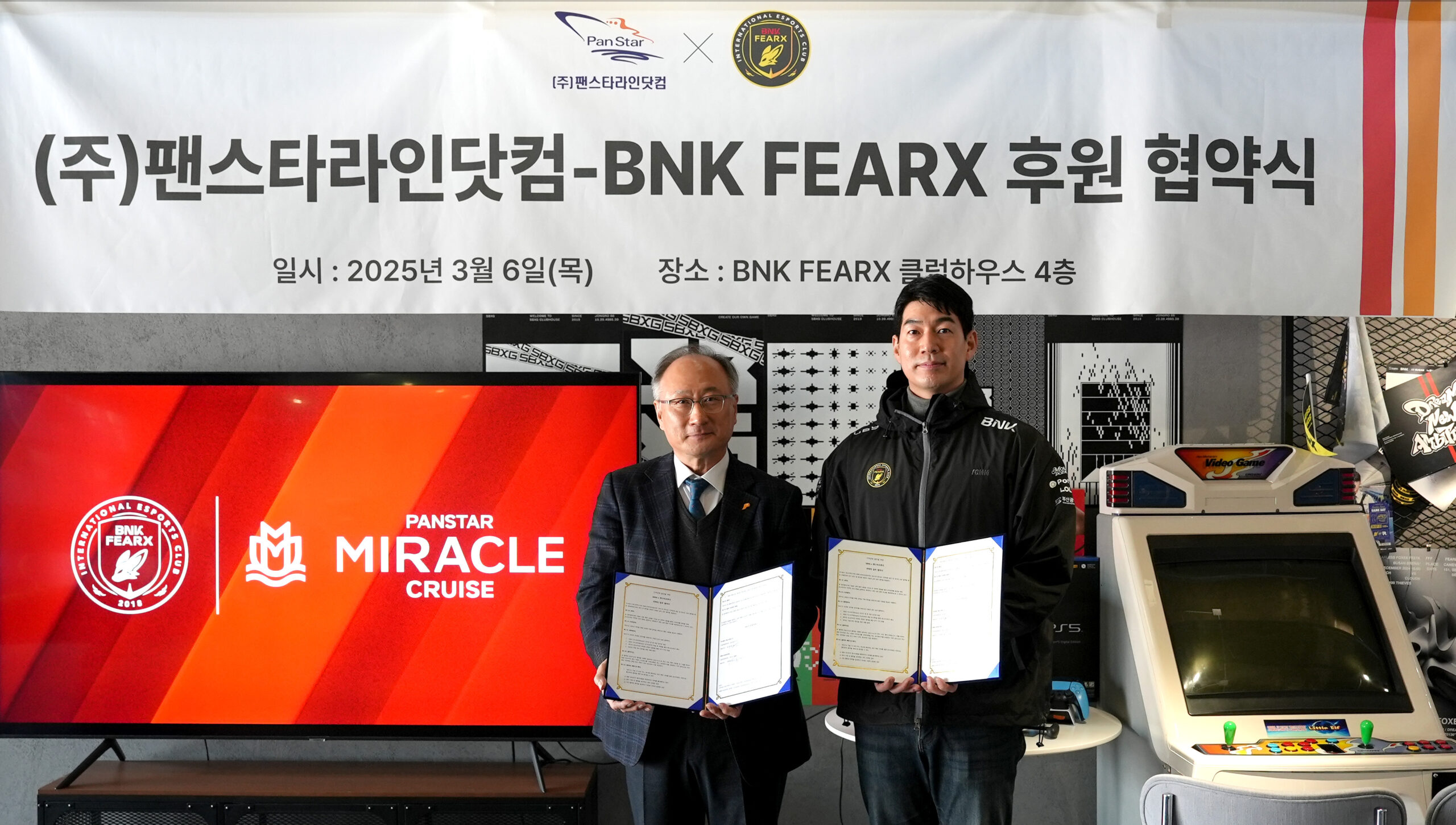 부산 이스포츠 기업 SBXG의 이스포츠 구단 BNK FEARX(이하 BNK 피어엑스)는 7일, 국적 크루즈선사인 (주)팬스타라인닷컴과 지역경제 활성화 및 팬, 관광객 유치를 위한 마케팅 파트너십 MOU를 체결했다고 밝혔다.