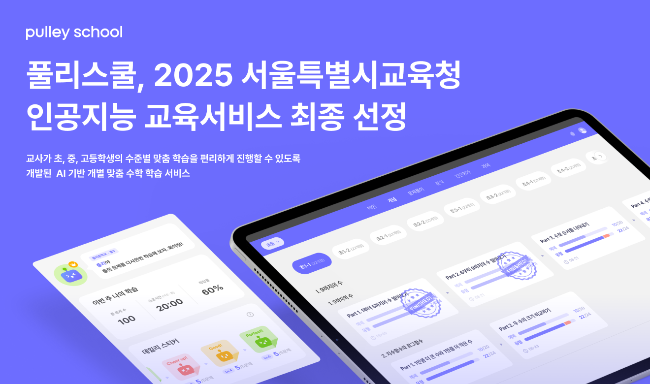 The Seoul Metropolitan Office of Education selected eight subject-specific edutech solutions as the '2025 Seoul Metropolitan Office of Education Artificial Intelligence Education Services' to increase the utilization of AI-based learning solutions and activate the application of AI in public education. Pullyschool was the only service selected for the math subject, and was ultimately selected in the 'AI-based math courseware' category.