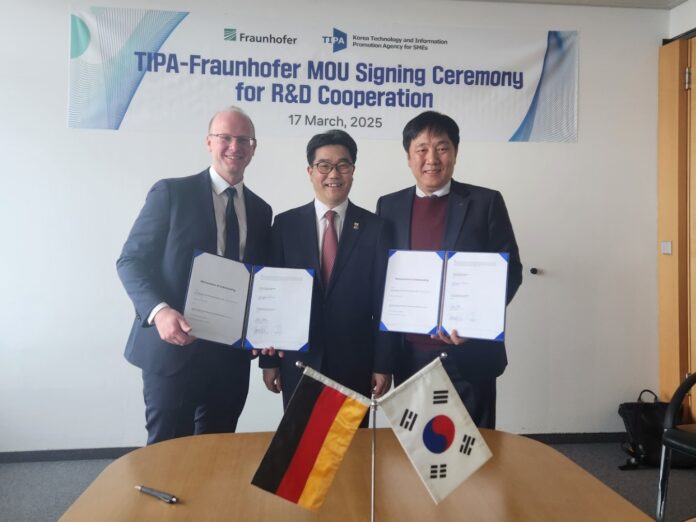 Le protocole d'accord a été signé par Johan Pekel, directeur du Centre Fraunhofer pour la coopération internationale, et Kim Young-shin, président de l'Institut coréen pour le progrès de l'information technologique, des PME et des startups, en présence de Kim Sung-seop, vice-ministre des PME et des startups.