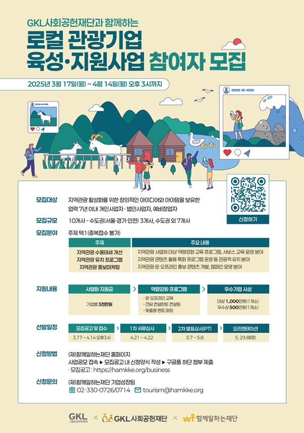 The Together Foundation announced that it is recruiting participants for the 'GKL Local Tourism Enterprise Promotion and Support Project' together with Grand Korea Leisure (GKL) and GKL Social Contribution Foundation.