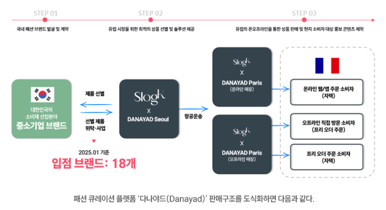 Slok 推出了时尚策划平台“DANAYAD”,支持韩国时尚品牌进军欧洲。该平台采用O2O(线下到线上)方式运营,主要针对20至30岁的女性。正如品牌名称所暗示的“优雅的水仙子”,该公司正在向欧洲市场推出兼具简约设计和功能性的韩国时尚产品。