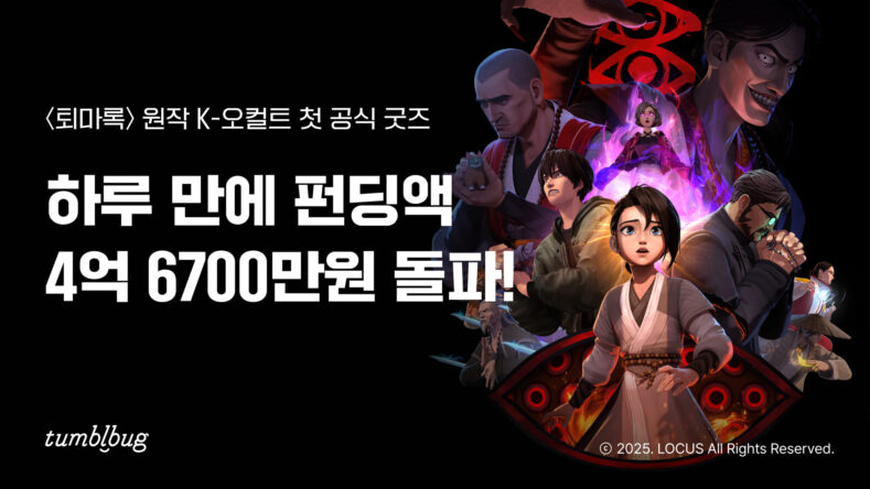 (株)バックパッカー(代表キム・ドンファン)が運営する国内代表クラウドファンディングプラットフォームタンブルバックは去る26日オープンしたオカルトブロックバスター長編アニメ「退馬録」初の公式グッズファンディングがオープン日で累積ファンディング額4億6700万ウォンを突破したと28日明らかにした。