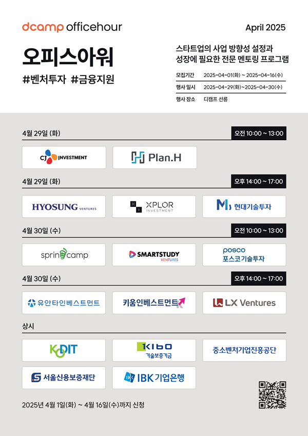 이번 ‘오피스아워’는 디캠프 공식 홈페이지를 통해 4월 16일까지 신청할 수 있다.