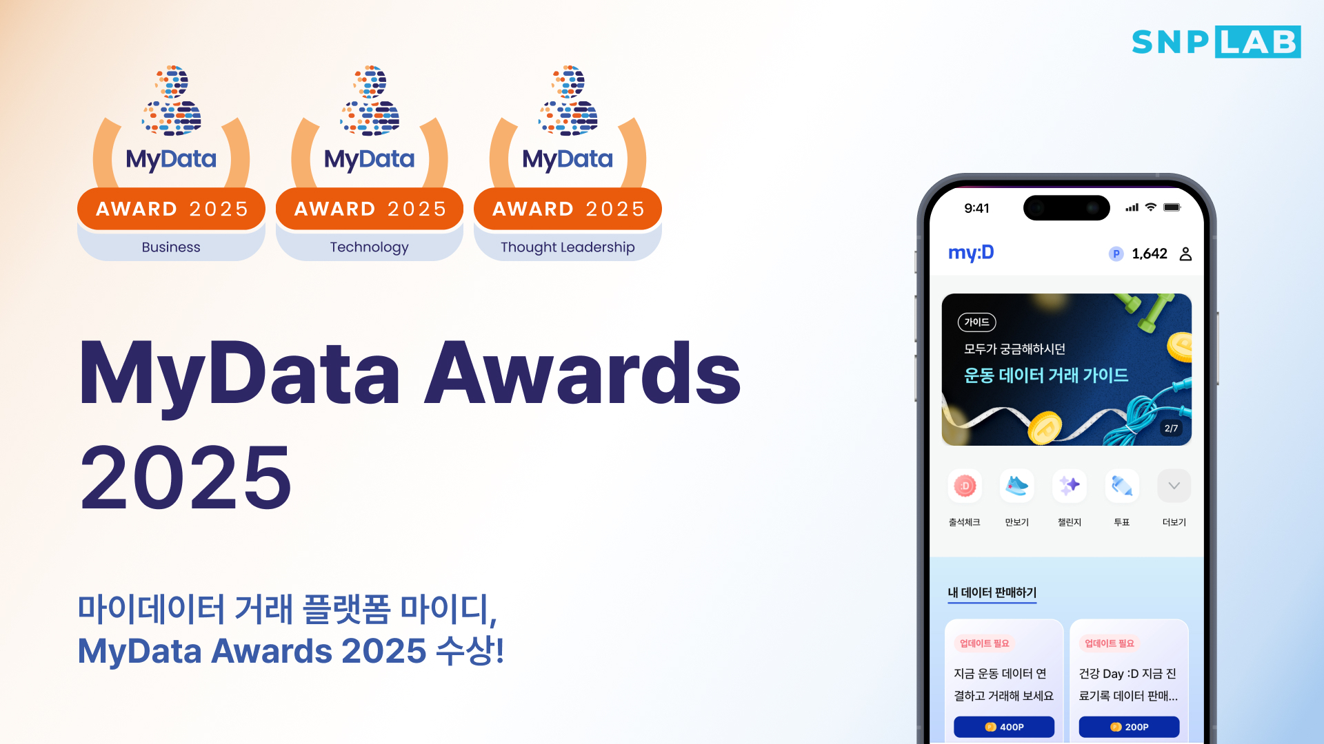 SNPLab Inc., a developer of personal information protection and data sovereignty technologies, announced that it was selected as the winner in three categories: Business, Technology, and Thought Leadership at the 'MyData Award 2025' hosted by the international organization MyData Global.