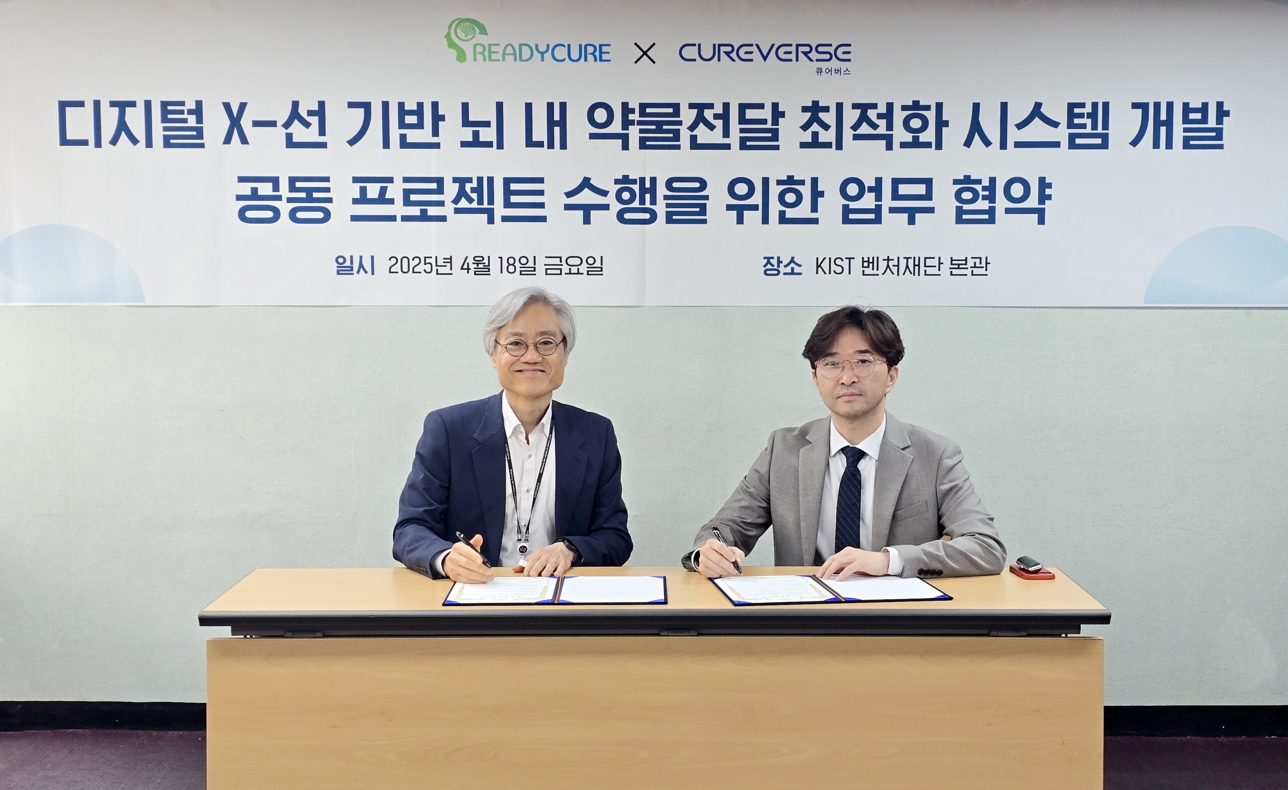 READYCURE, which is developing a digital X-ray-based dementia treatment system, announced on the 25th that it has signed a business agreement (MOU) with CUREVERSE, a brain disease treatment development company, for the 'development of a digital X-ray-based brain drug delivery optimization system.'