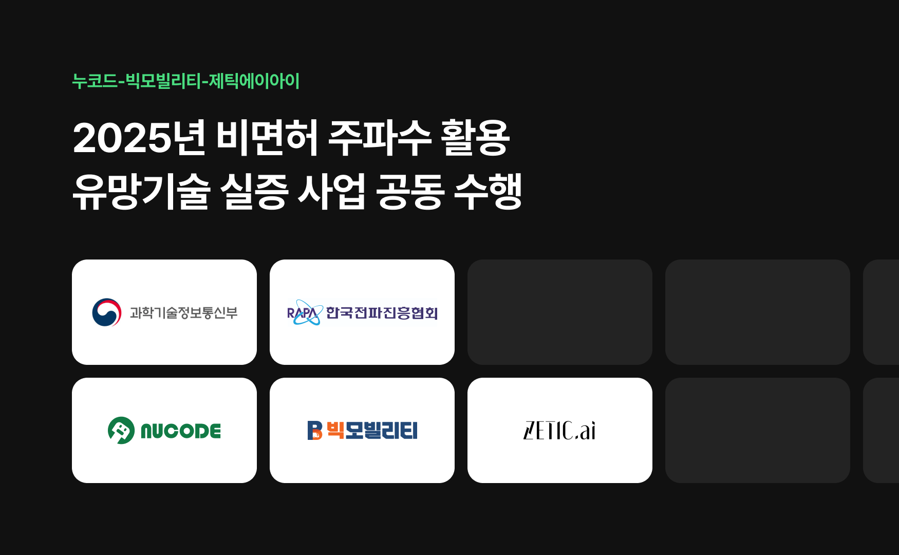 無線通信モジュール専門企業ヌコードは、科学技術情報通信部傘下の韓国電波振興協会(RAPA)が主催し、ビッグモビリティが主管する「2025年非免許周波数活用有望技術実証事業」にジェティックAIとともに参加企業として最終選定されたと28日明らかにした。