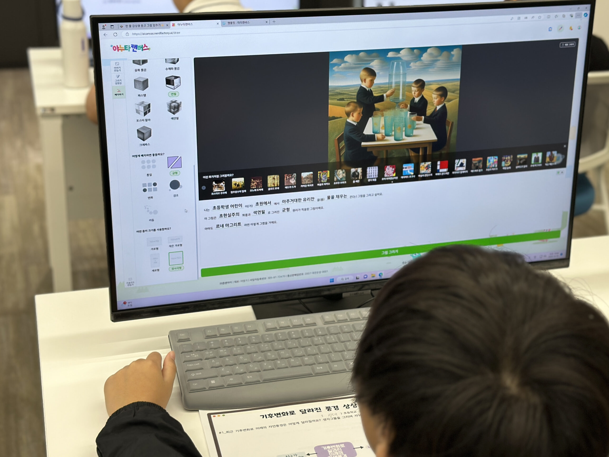 In particular, AnutaCanvas provides an intuitive interface that allows you to create AI pictures with just a click of a button without complex commands, so that even elementary school students can use it easily. Teachers can introduce this service to their classes without any separate expertise, as it comes with basic teaching materials and a curriculum. The curriculum, designed with the advice of children's art education professors, guarantees educational reliability and professionalism, and can be used in various educational environments such as the free semester system, career experience classes, and creative experience activities.