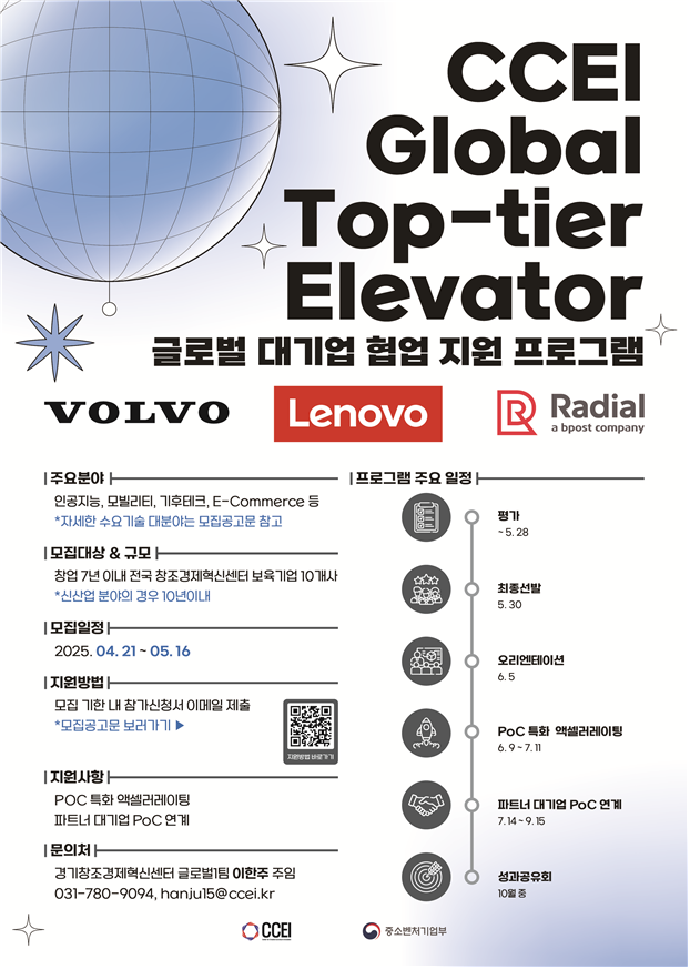 Gyeonggi Innovation Center, '2025 CCEI Global Top-tier Elevator' Participating Companies Recruitment