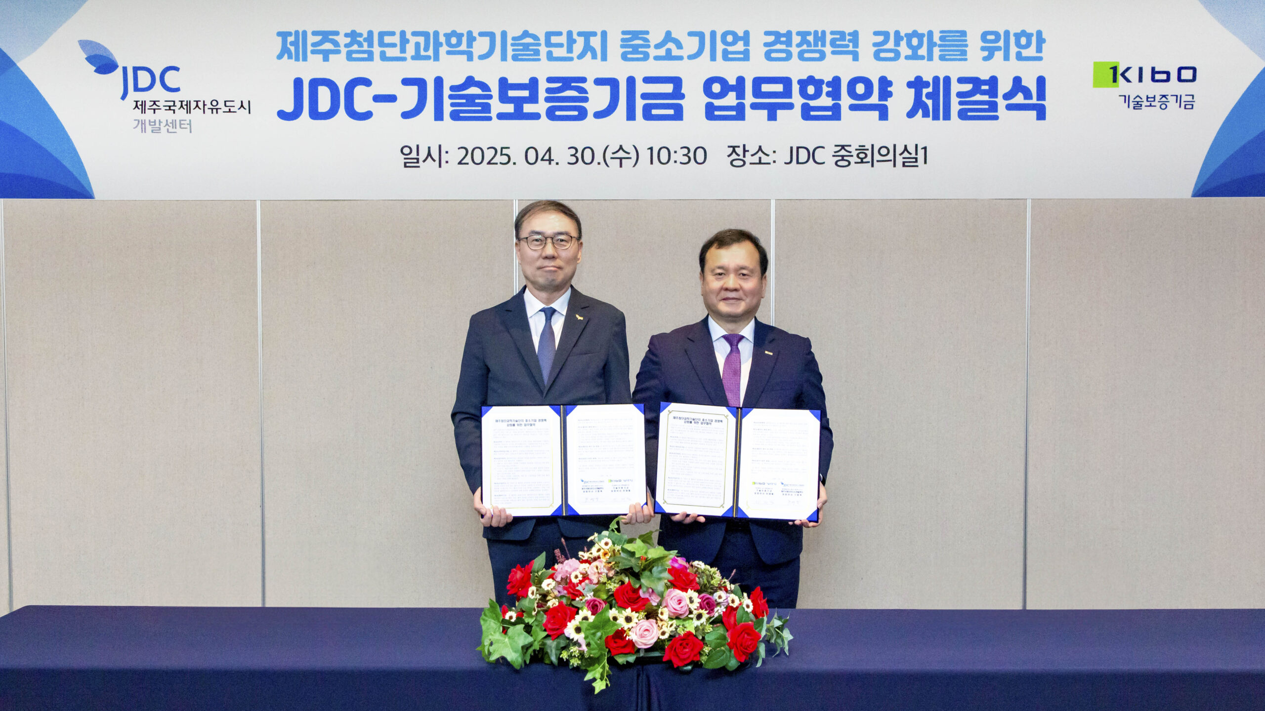 The Korea Technology Finance Corporation (hereinafter referred to as “KIBO”) announced on Friday, the 2nd, that it signed a “Business Agreement to Strengthen the Competitiveness of Small and Medium-sized Enterprises in the Jeju Advanced Science and Technology Complex” with the Jeju International Free City Development Center (hereinafter referred to as “JDC”).