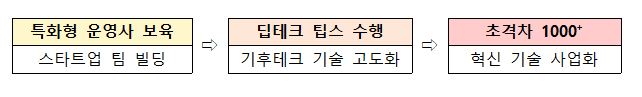 기후테크 분야 전문성을 갖춘 특화형 팁스 운영사를 지정·활용하고, 기후테크 스타트업이 딥테크 팁스를 수행하면 초격차 1000+ 지원 시 우대한다.