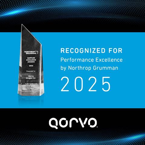 Northrop Grumman annually awards key suppliers for their contributions to its core business. Qorvo received the Supplier Performance Excellence Award in recognition of its technological prowess and performance in providing innovative and cost-effective defense radar and communications solutions. Qorvo provides innovative and cost-effective solutions to help customers remain competitive in a rapidly changing global security environment.
