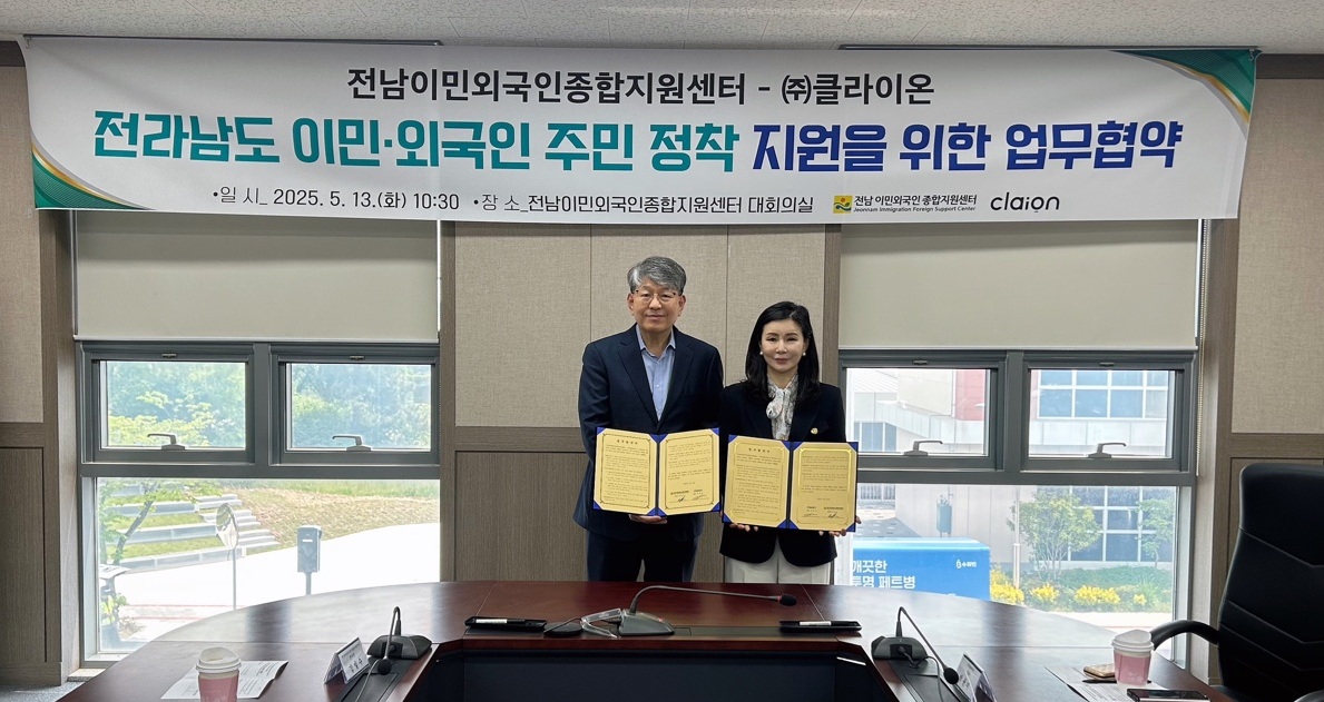 Claion and Jeonnam Immigration and Foreigner Comprehensive Support Center Sign Business Agreement
