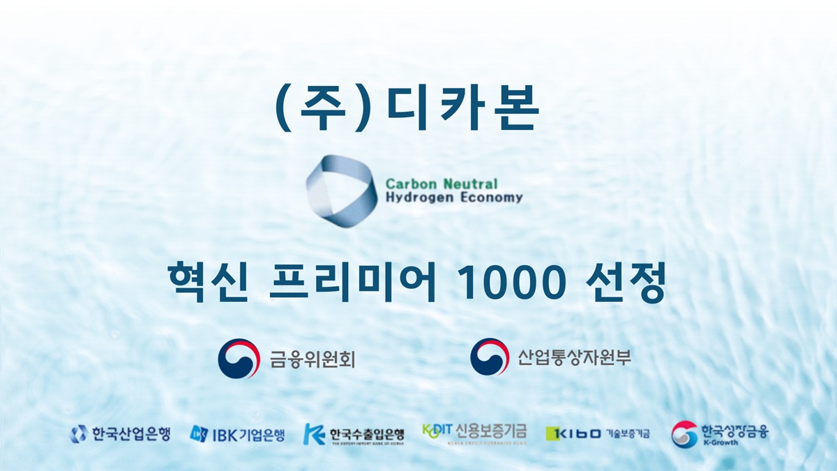 탄소중립 및 수소경제 관련 기술을 개발하는 디카본이 금융위원회 등 13개 부처가 공동으로 추진하는 ‘혁신 프리미어 1000’ 프로그램에 선정됐다고 22일 밝혔다.