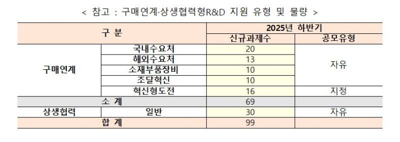 Ministry of SMEs and Startups, '2025 Purchase-linked and Win-Win Cooperation R&D' New Projects Additional Recruitment 99