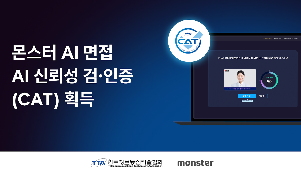 Muhayu, an AI company based on natural language processing, announced on the 4th that its AI interview service 'Monster' has acquired the Certification of AI Trustworthiness (CAT) 1.0 hosted by the Ministry of Science and ICT and the Telecommunications Technology Association (TTA).