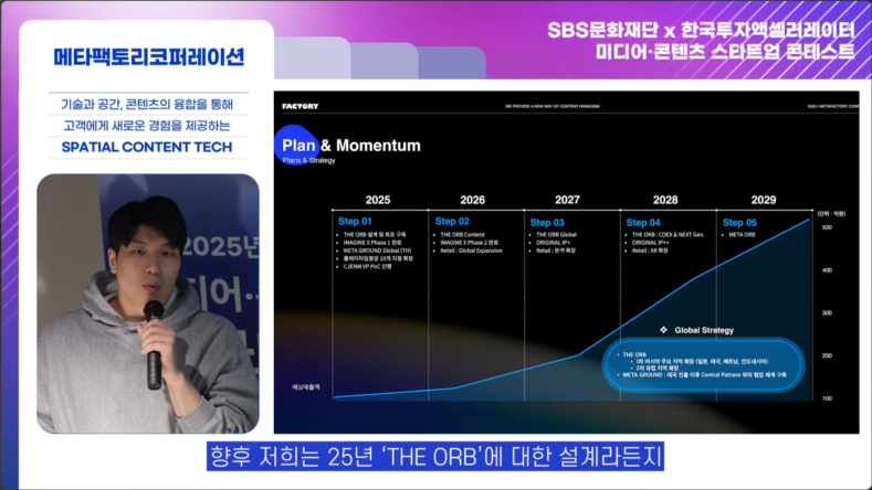 今年初め、メタファクトリーコーポレーションはSEED室とのOffice Hourから得たインサイトを元にグローバル事業に着手した。 SEED室イタクリム実装が米国のスポーツエンターテイメント企業'Cosm'事例を共有したことがきっかけになった。 CosmはNFL、NBA、UFCなど人気スポーツ競技を超大型スクリーンで中継し、観客が競技場にいるような没入感をパブや屋内スポーツバーのような空間で体験できるようにする。このアイデアにインスピレーションを受けたメタファクトリーコーポレーションのハン・ウォンヒ代表は一週間で事業提案書を完成し、メガボックスとのコラボレーションミーティングを実現させ、現在「The Orb」プロジェクトを本格的に推進中だ。