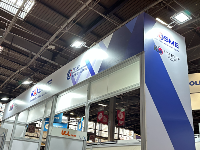 < Vue panoramique du hall intégré K-Startup de l'Agence coréenne des PME et des startups (KOSME) à VivaTech 2025>