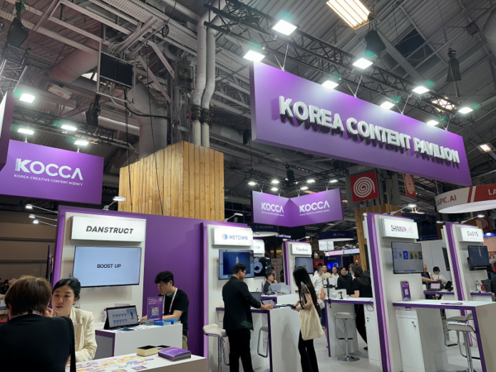 < 한국콘텐츠진흥원(KOCCA)이 운영하는 ‘코리아 콘텐츠 파빌리온’에서 K-콘텐츠 기업들이 기술을 선보이고 있다>
