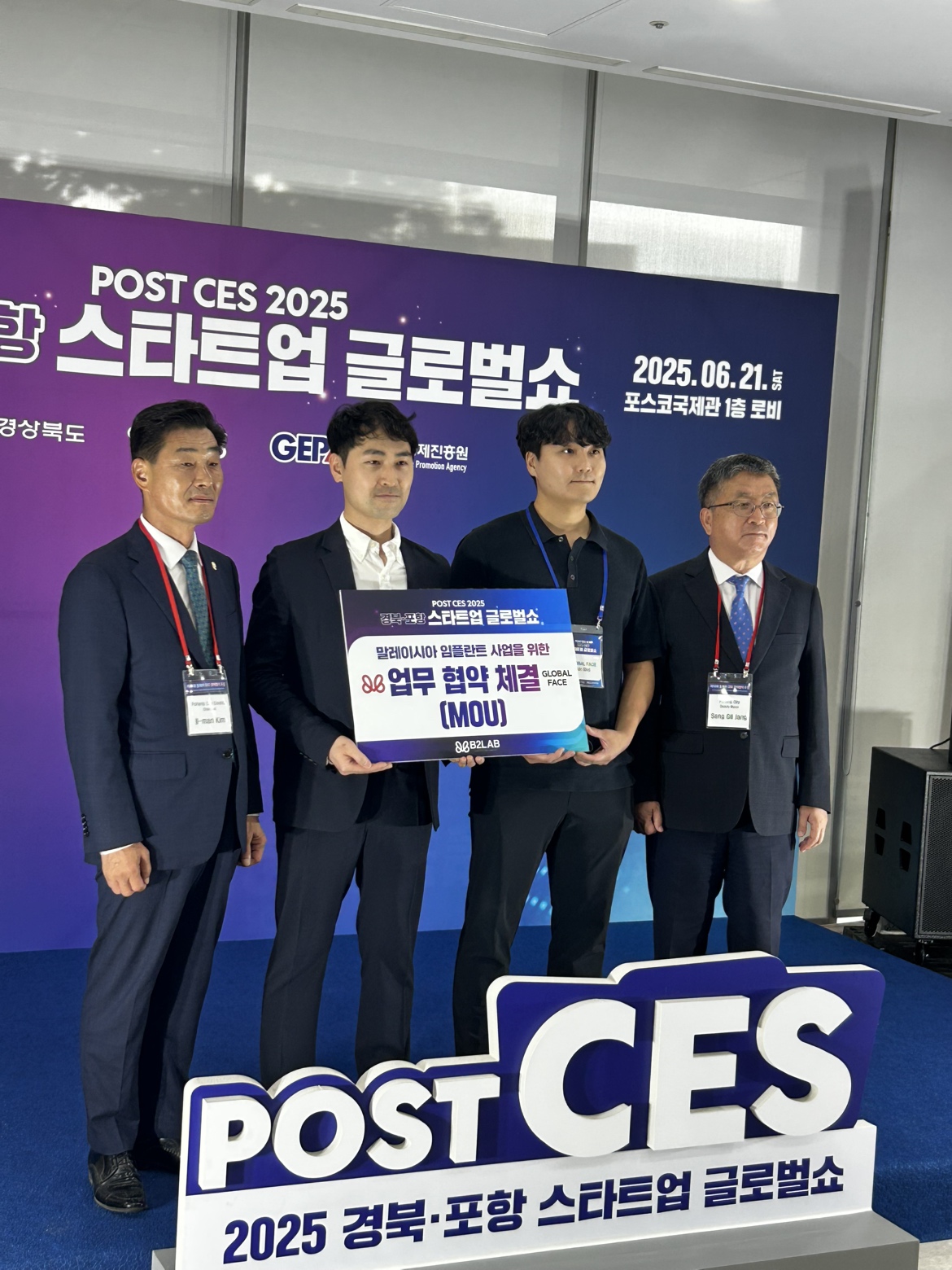 Medical device technology company Bitulab announced on the 21st that it signed a business agreement (MOU) with Malaysian distributor Global Face for the supply of implant products and technological cooperation at the 'POST CES 2025 Gyeongbuk·Pohang Startup Global Show' held at the POSCO International Pavilion.