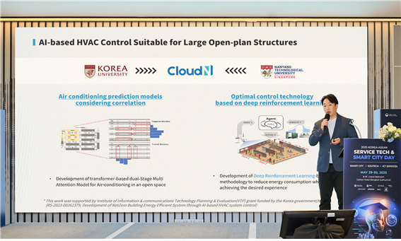 또한, 동남아의 기후 특성을 고려한 AI 기반 온도 예측 및 HVAC 제어 알고리즘도 소개됐다. 해당 기술은 과학기술정보통신부와 싱가포르 AI Singapore가 공동 지원하는 국제 공동 연구로 개발 중이며, 고려대학교와 협력해 정보통신기획평가원(IITP) ‘정보통신방송기술국제공동연구사업’의 일환으로 진행되고 있다.