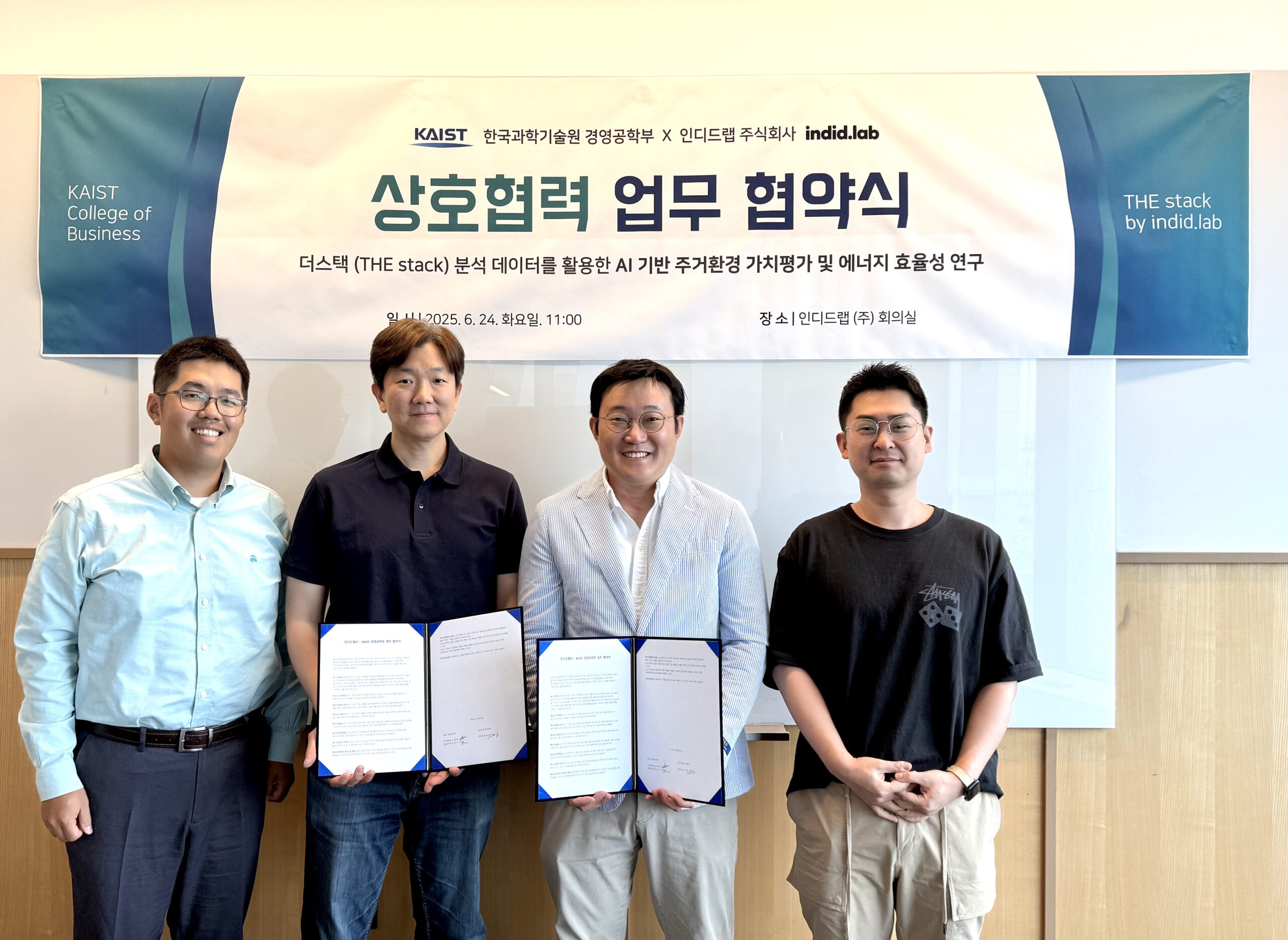 The signing ceremony was held on June 24, 2025 at Indeed Lab's headquarters in Yeouido, Seoul, and joint research is expected to begin in earnest in conjunction with a related research project involving Professor Shin Dong-hyeok and Professor Han Jin-soo of the KAIST Department of Management Engineering.
