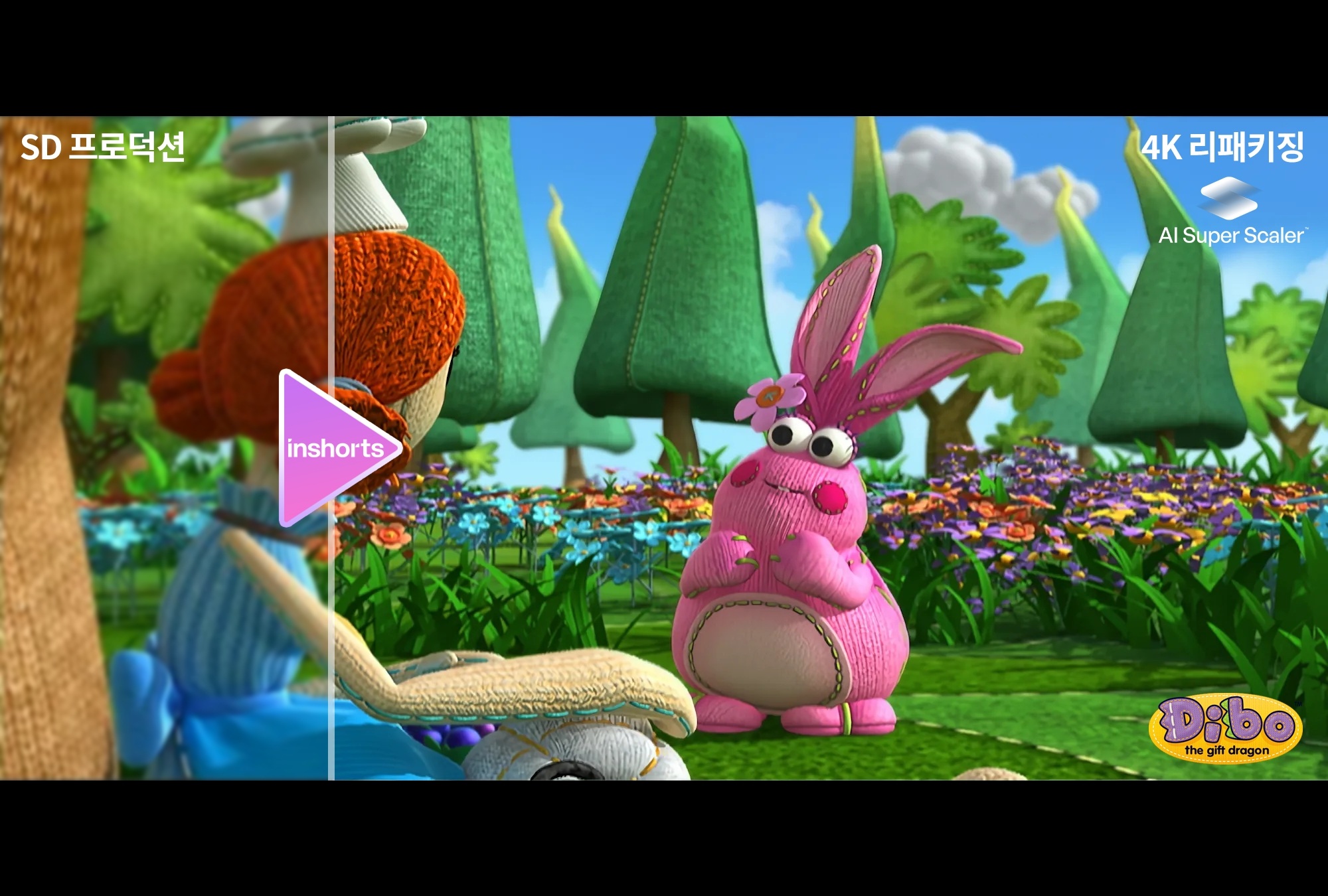 今回の事業の最初の適用事例として、インショーツはアニメ制作会社オコン(代表キム・イルホ、ウ・ジヒ)と協力して2006年製作されたTVアニメシリーズ「ギフト恐竜ディボ」の前編にAIベースの4Kアップスケーリング技術を適用する。 SD解像度で制作されたオリジナルコンテンツを高解像度に変換することで、IPの競争力を強化し、コンテンツのリサイクル性を高めることが目的である。