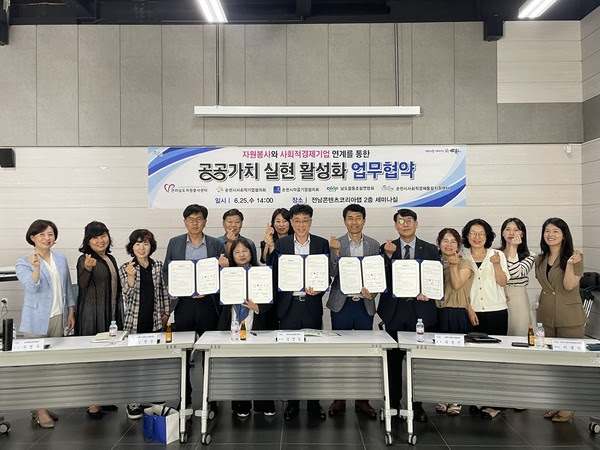 전라남도자원봉사센터(센터장 김상길)는 6월 25일 순천시사회적경제통합지원센터 회의실에서 사회적경제 관련 4개 단체와 자원봉사 및 사회적경제 연계를 위한 업무협약(MOU)을 체결했다고 밝혔다.