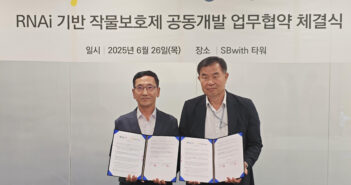 그린바이오 전문기업 제놀루션(대표 김기옥)은 26일 작물보호제 전문기업 SB성보(대표 윤정선)와 dsRNA 기반 작물보호제 공동연구 및 협력을 위한 양해각서(MOU)를 체결했다고 27일 밝혔다. 이번 협약은 RNA 간섭(RNA interference, RNAi) 기술을 활용한 차세대 작물보호제 개발을 위한 공동 연구를 골자로 하며, 구속력이 없는 비배타적 협약 형태로 체결됐다. 양사는 향후 자율적인 협의와 별도 계약을 통해 협력 범위를 점차 확대해 나갈 계획이다. 제놀루션은 유효 dsRNA 선발, 대량합성 및 분석 등 RNAi 분야의 원천기술을 제공하고, SB성보는 농업 분야에서의 사업 경험과 연구 인프라를 바탕으로 현장 적용 가능성을 높인 연구를 공동으로 추진할 예정이다. 양사는 ▲dsRNA 작물보호제의 공동 연구 및 상용화 추진 ▲연구성과의 상호 활용 ▲관련 산업 네트워크 확대 등을 중심으로 협력을 강화할 방침이다. 제놀루션 측은 이번 협약을 유연하고 확장성 있는 오픈이노베이션 전략의 일환으로 보고 있으며, 기술의 실용성 검증과 시장성 확보를 위한 사업화 기반 구축에 의미를 두고 있다. 또한 향후 산학연 협력을 통해 연구, 실증, 상용화를 포괄하는 통합형 협력 모델로 확대할 계획이라고 밝혔다. SB성보는 제놀루션의 RNAi 기술이 농업 바이오 분야에서 실용적 솔루션으로 발전할 가능성이 높다고 평가하며, 양사의 협력을 통해 차별화된 작물보호 기술 개발을 추진하겠다는 입장이다. 관련 기사 더보기 https://www.venturesquare.net/971133